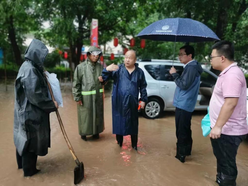 图为陕西省长武县丁家镇党委书记刘军仓(右三)在一线现场指挥防汛。(长武县委宣传部供图)