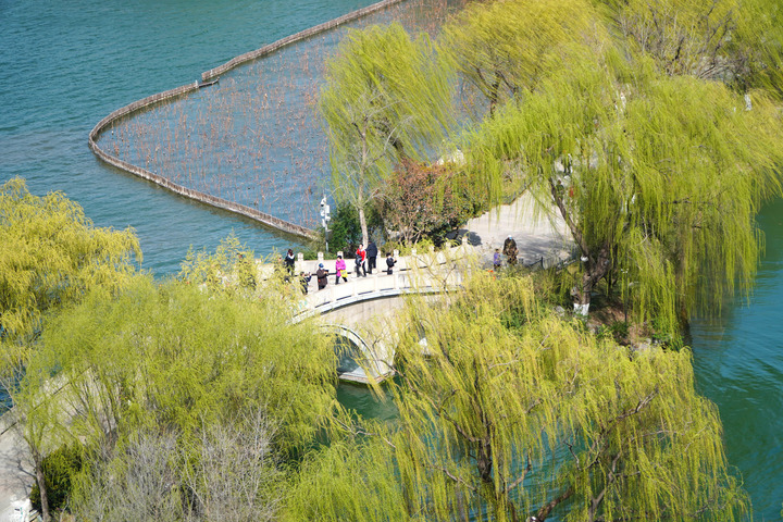 2024年3月21日,游客在大明湖观光。新华社记者 徐速绘 摄