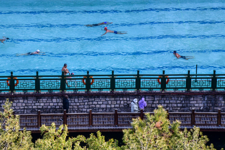 2024年12月7日,冬泳爱好者在济南泉水浴场内冬泳。新华社记者 朱峥 摄