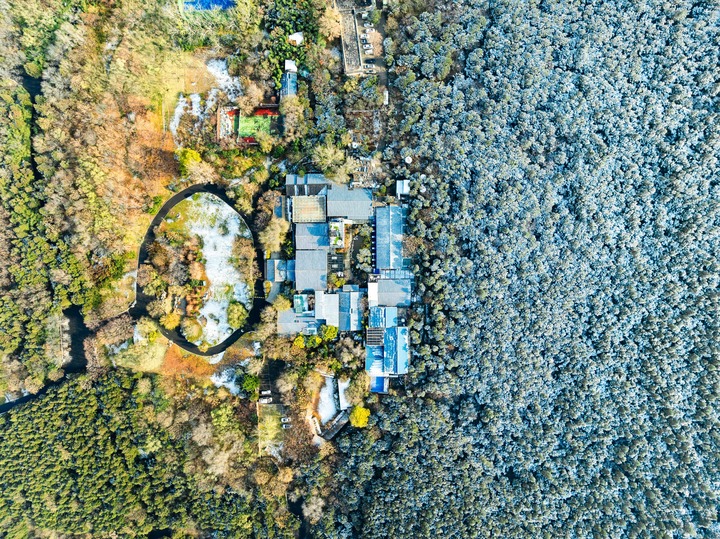 2024年12月13日拍摄的山东济南千佛山雪后景观(无人机照片)。新华社发(徐舟摄)
