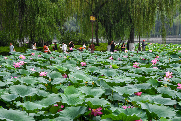 2024年6月29日,游客在济南大明湖观赏荷花。新华社记者 朱峥 摄