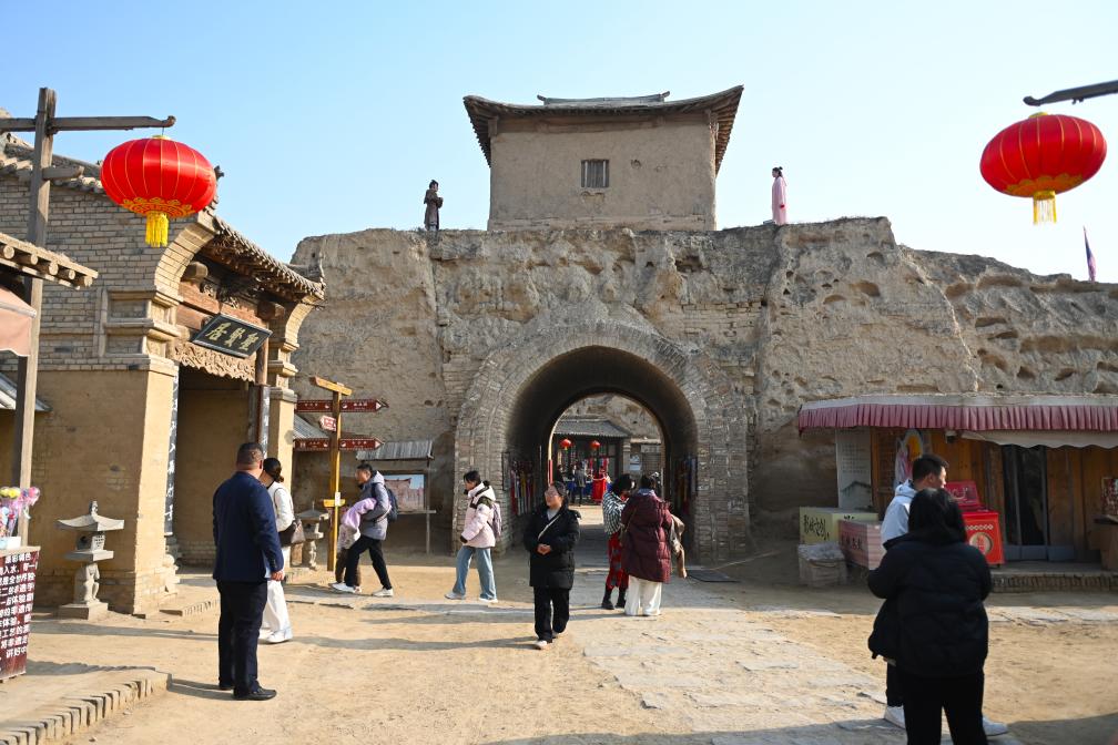 2024年11月23日,在镇北堡西部影城,游客在电影《大话西游》取景地游览。新华社记者 毛竹 摄