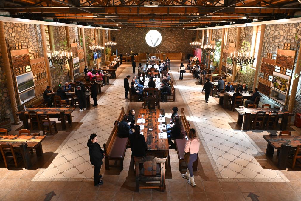 2024年10月23日,游客在位于宁夏银川市的志辉源石酒庄品酒。新华社记者 毛竹 摄