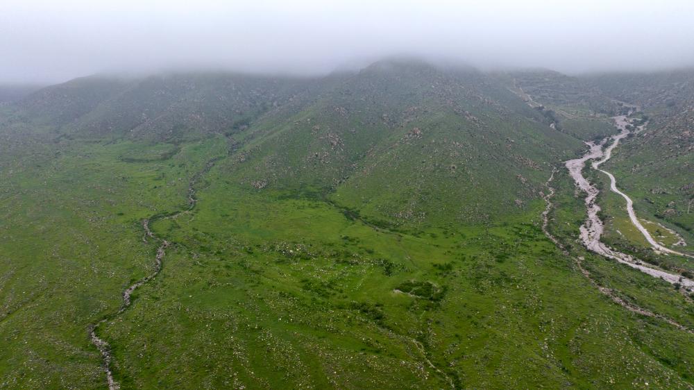 位于宁夏贺兰山东麓的酿酒葡萄种植基地(2024年6月12日摄,无人机照片)。新华社记者 王鹏 摄