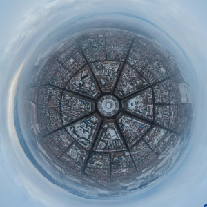 这是新疆伊犁哈萨克自治州特克斯县八卦城冬季景色(2021年1月2日摄,无人机球形全景照片)。新华社记者 丁磊 摄