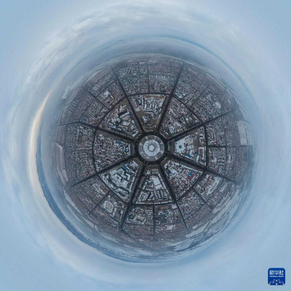 这是新疆伊犁哈萨克自治州特克斯县八卦城中心——太极坛(2025年2月22日摄,无人机照片)。新华社发(赵丰收 摄)