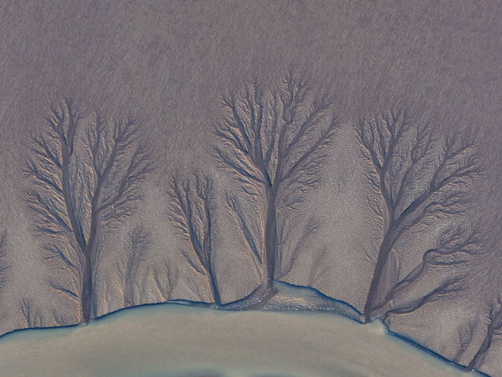 这是2024年10月29日在盐城市东台条子泥湿地拍摄的“潮汐树”(无人机照片)。新华社记者 李博 摄