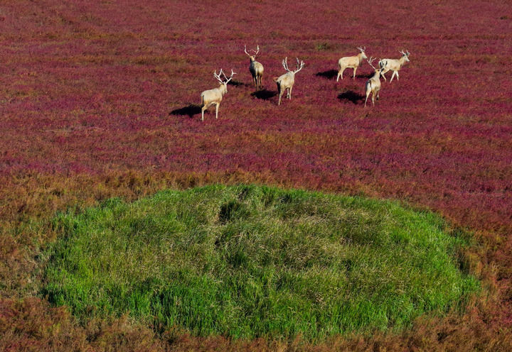 通过无人机俯瞰这片广袤的滩涂湿地,会看到赭红、金黄、黛青的色块。盐城的滩涂湿地每年仍以10多平方千米的速度向大海延伸。