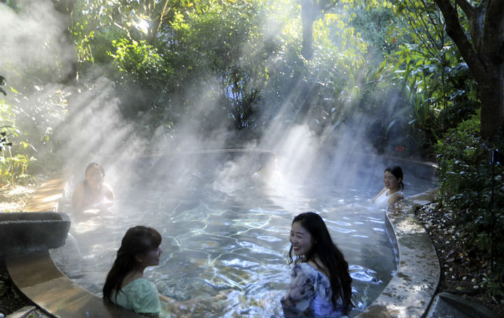 2025年1月20日,游客在腾冲市洞山温泉村泡温泉。新华社发(龚祖金摄)
