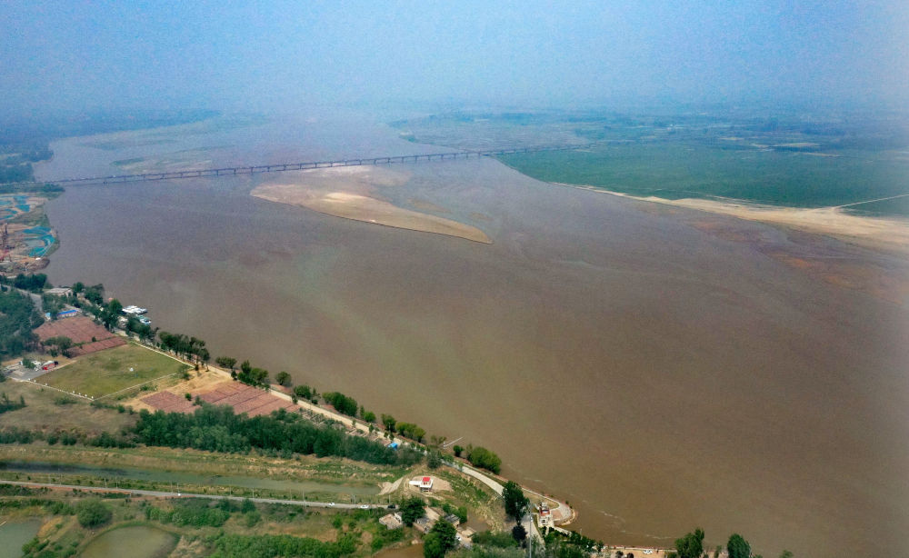 2025年4月27日拍摄的黄河郑州段(无人机照片)。新华社记者 李嘉南 摄