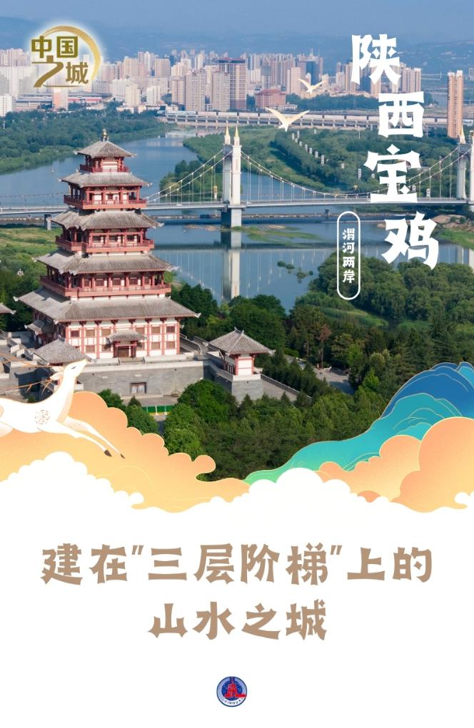 从高处俯瞰,陕西宝鸡城沿着三层巨大的“U形阶梯”徐徐展开:南有秦岭山脉拔地而起;中间,渭河自西向东穿城而过,铺开一道宽阔的水廊;北边,隆起的黄土台塬平坦开阔,沉稳如磐。