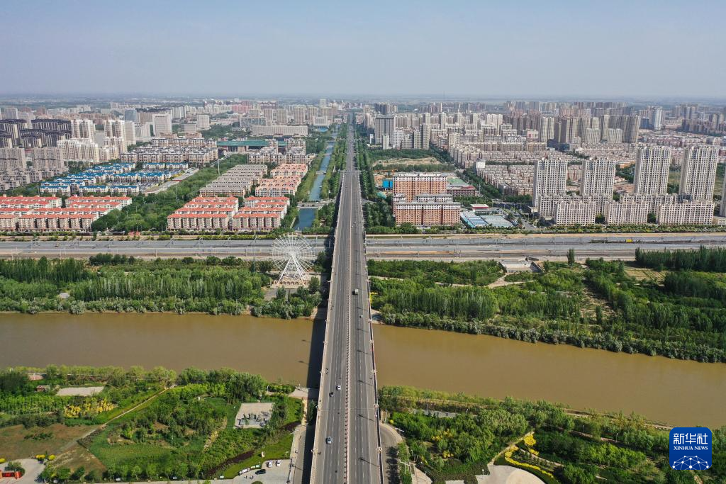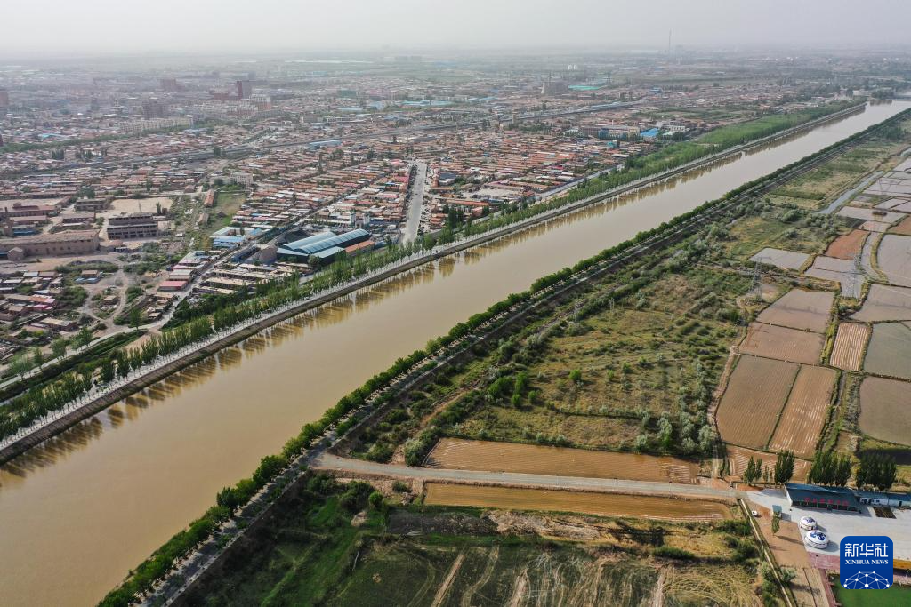 这是5月28日拍摄的内蒙古巴彦淖尔市磴口县境内的总干渠(无人机照片)。 新华社记者 李志鹏 摄