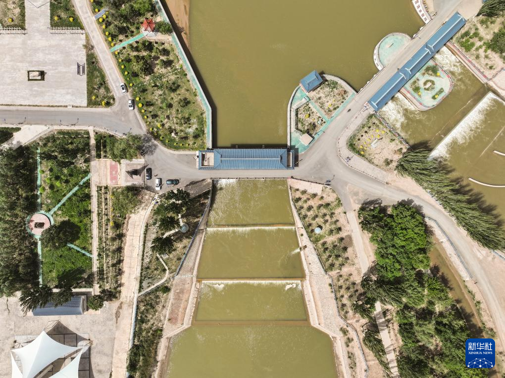 这是5月28日拍摄的内蒙古巴彦淖尔市临河区境内的总干渠第二分水枢纽(无人机照片)。 新华社记者 马金瑞 摄