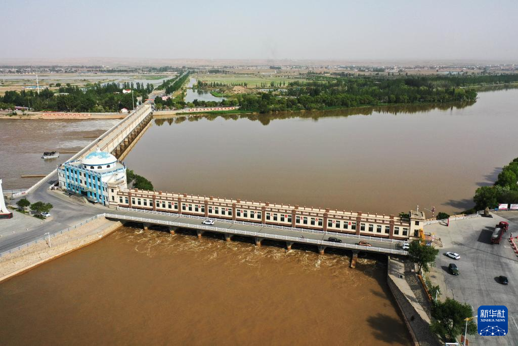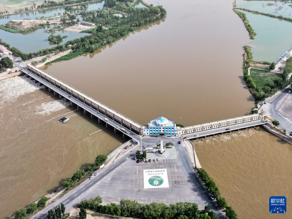 这是5月28日拍摄的位于内蒙古巴彦淖尔市磴口县的三盛公水利枢纽(无人机照片)。 新华社记者 李志鹏 摄