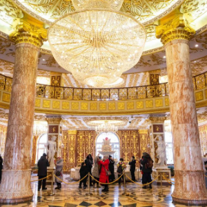 在哈尔滨市道外区,游客在哈药六厂主楼中参观(2024年1月17日摄)。哈药六厂主楼为欧式风格,雄伟壮观,被网友称为“东北卢浮宫”,成为哈尔滨旅游的热门打卡地。新华社记者 谢剑飞 摄