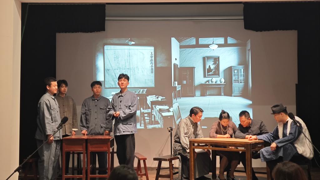 这是红色情景剧《曙光初照》在内蒙古民族解放纪念馆演出。(乌兰 摄)
