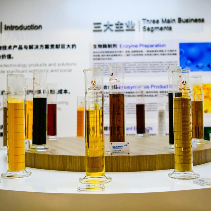 内蒙古溢多利生物科技有限公司展厅的酶制剂产品样本。新华社发(康文魁 摄)