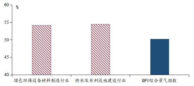 绿色环保设备材料制造、供水及水利设施建设行业景气指数与GPI综合景气指数