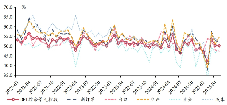 GPI综合景气指数与部分分项指数走势