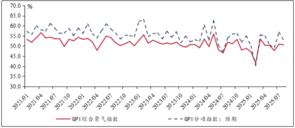 8月调研结果显示,、8月GPI指数为50.6%,较上月降低0.3个百分点,扩张略有放缓;同时,绿色产业预期指数环比下跌约4个百分点至52.9%,但维持在临界点之上,显示出较高韧性。