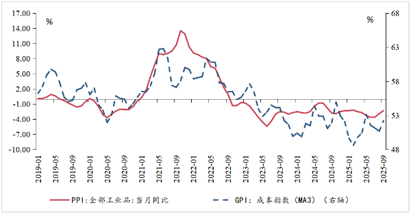 图表 3: GPI成本指数与PPI当月同比