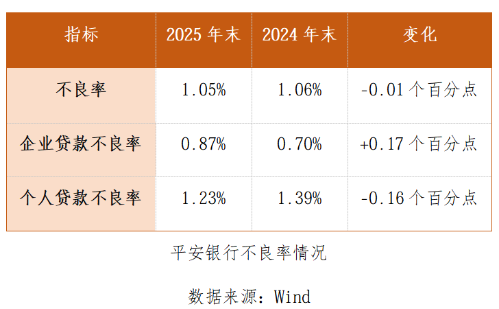 平安银行资产质量呈现出“静态平稳、动态承压、拨备变薄”等多重特征。这源自其战略转型的阵痛。而2026年将是验证平安银行资产质量企稳见真章的关键年份。