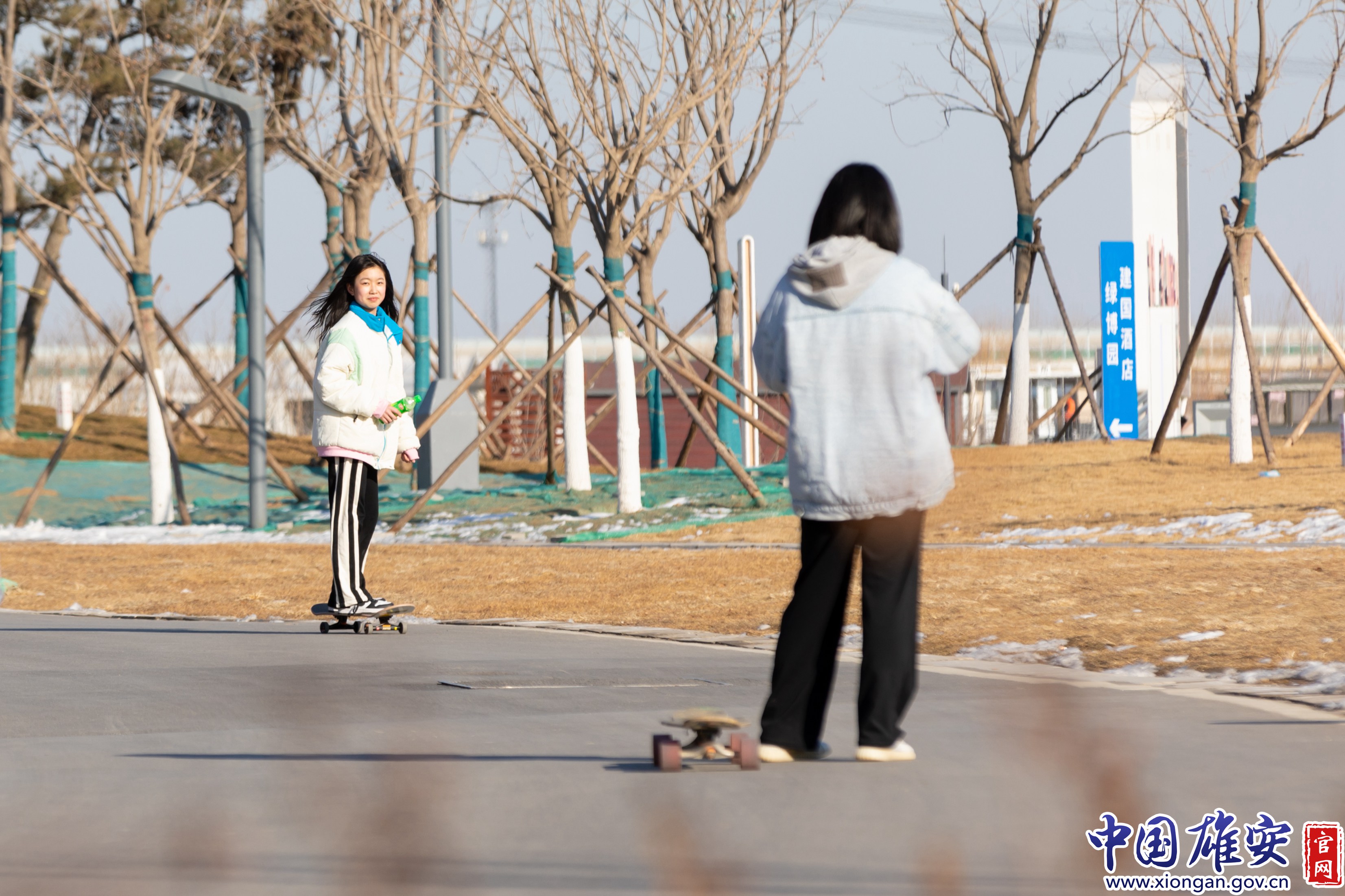 雄安郊野公园里,孩子约上朋友一起玩滑板。中国雄安官网毛鹤然 摄