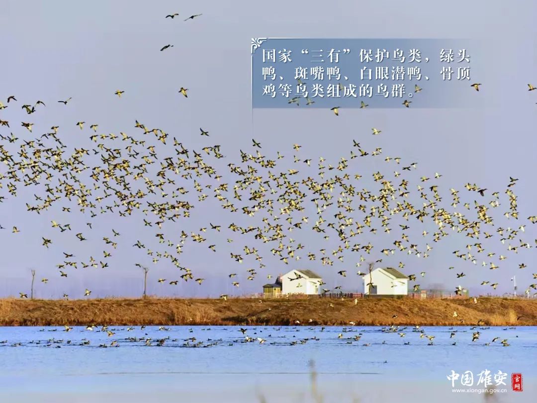 大批鸟群在淀中畅游、嬉戏、觅食。中国雄安官网发