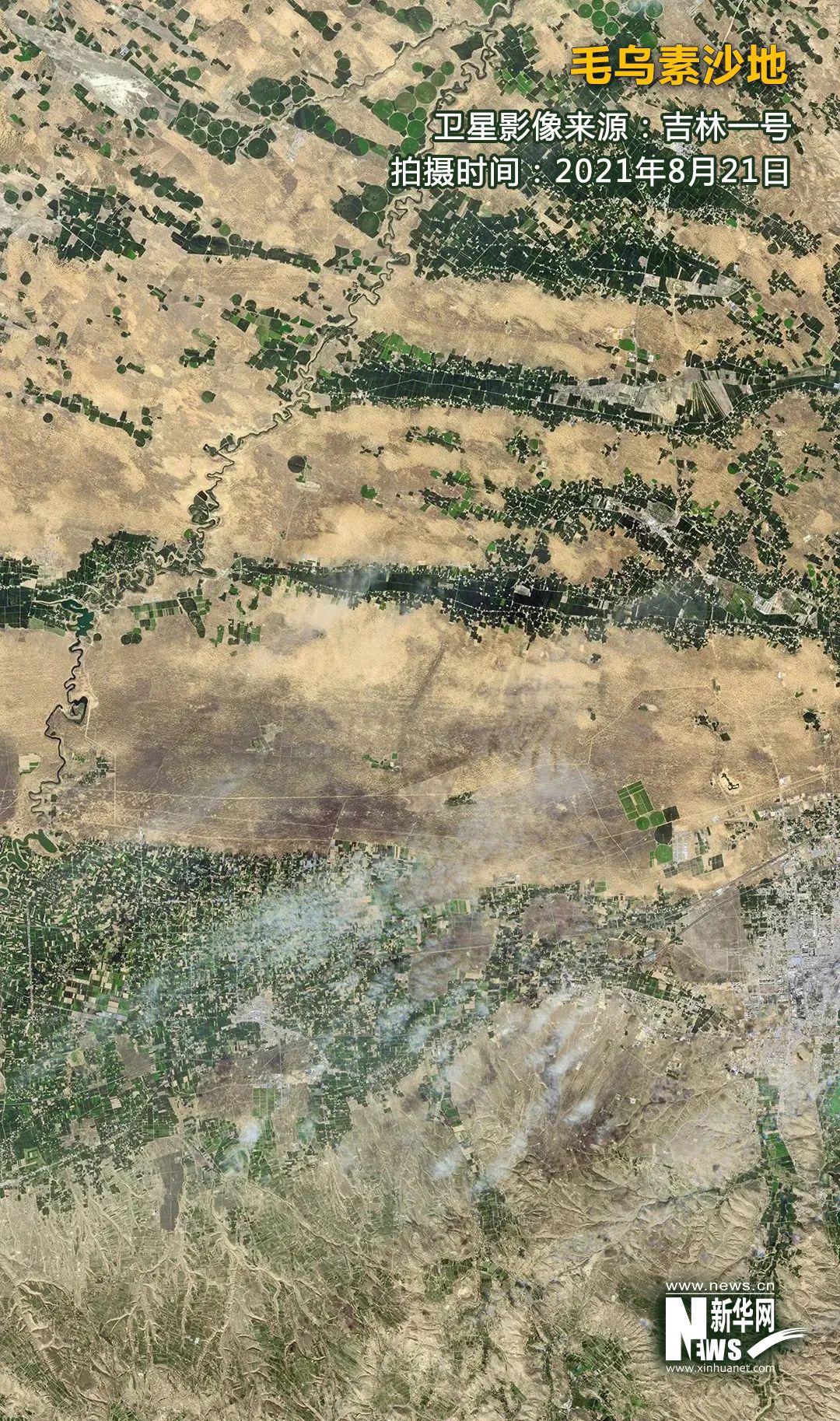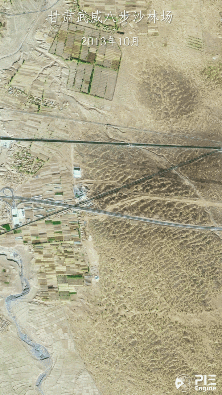 ▲卫星视角下的包兰铁路。图片来源:新华社