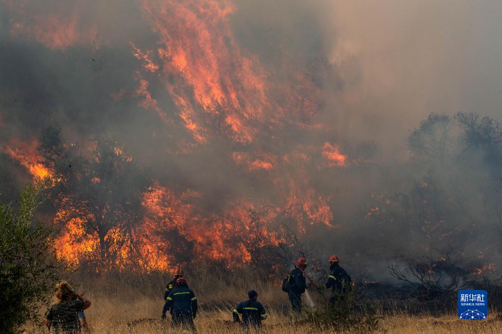 8月23日,消防員在希臘雅典西北的維利亞村進(jìn)行滅火作業(yè)。