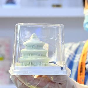9月5日,工作人員在服貿(mào)會(huì)首鋼園區(qū)文旅服務(wù)展館展示天壇慕斯雪糕。