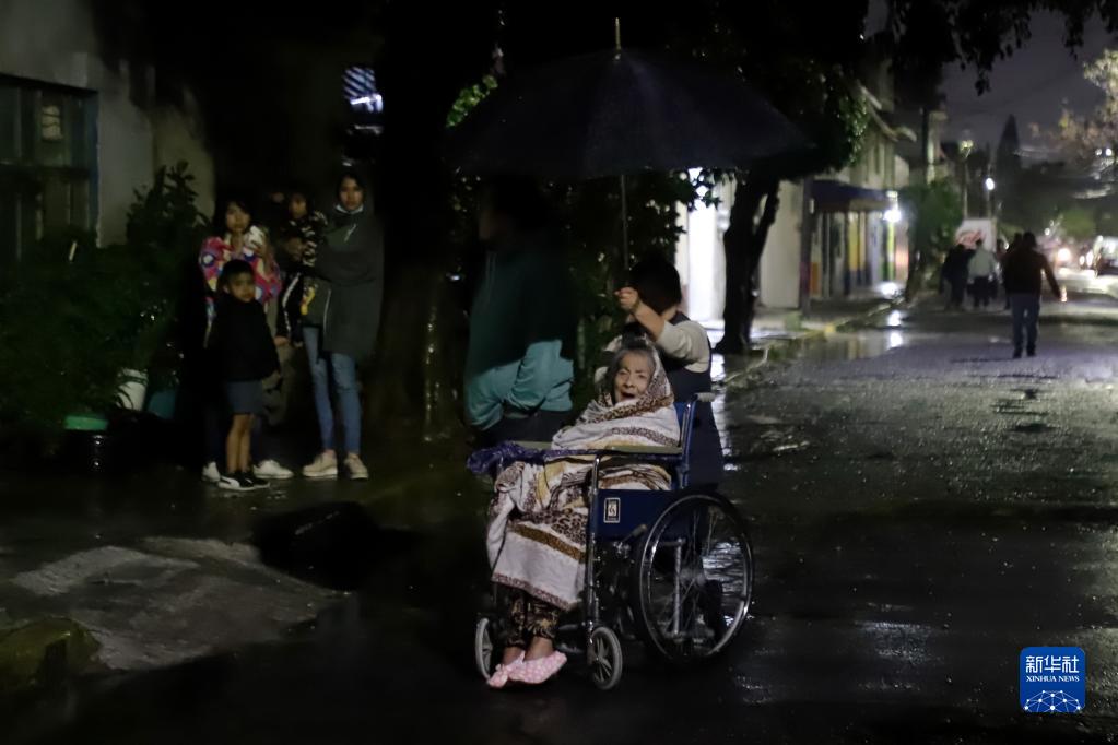 9月7日,在墨西哥內(nèi)薩瓦爾科約特爾,地震發(fā)生后民眾在室外停留。