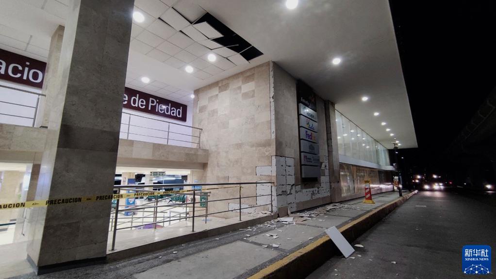 9月7日,在墨西哥格雷羅州阿卡普爾科,一處建筑物在地震中受損。
