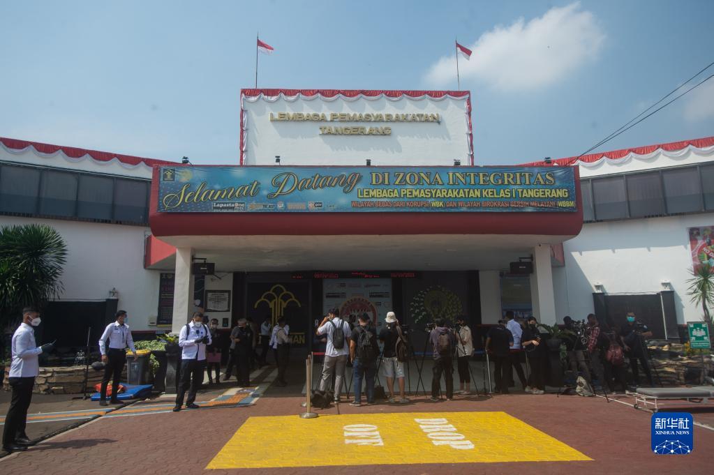 9月8日,媒體記者和工作人員聚集在印度尼西亞唐格朗一監獄門前。