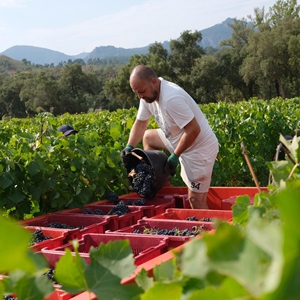 9月9日,在法國南部濱海阿爾卑斯省的芒德略拉納普勒,果農(nóng)采摘用來釀酒的葡萄。
