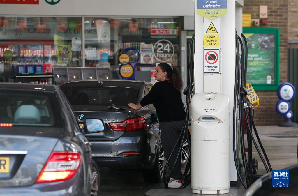 9月27日,一名女子在英國倫敦一家加油站加油。新華社記者 韓巖 攝
