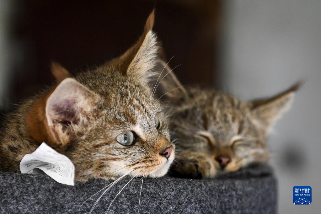 這是9月30日在西寧野生動物園拍攝的兩只人工救助的荒漠貓幼崽。