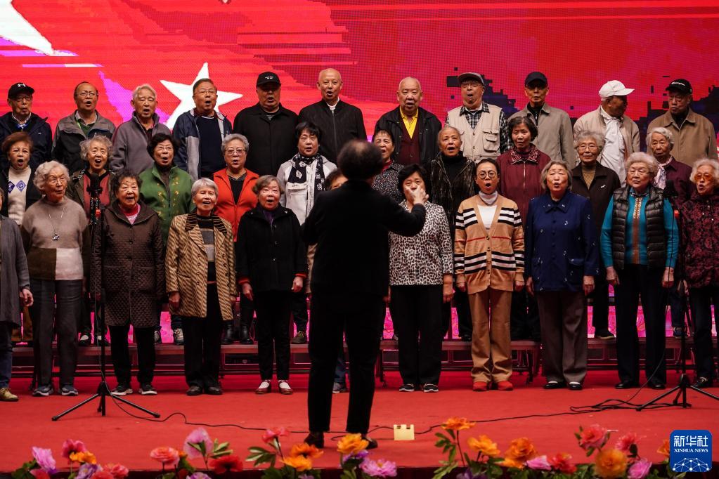 10月11日,在位于河北燕郊的燕達金色年華健康養護中心活動中心內,老人們在合唱。