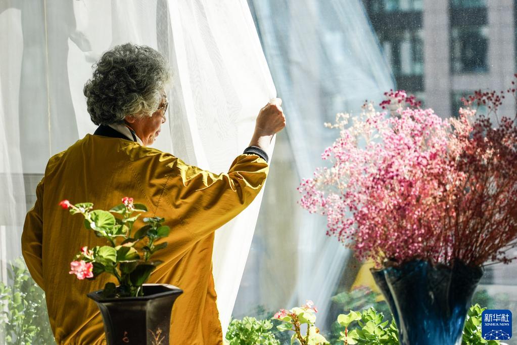 10月11日,在北京的家中,李戰平出門前往養老公寓前將窗簾拉上。