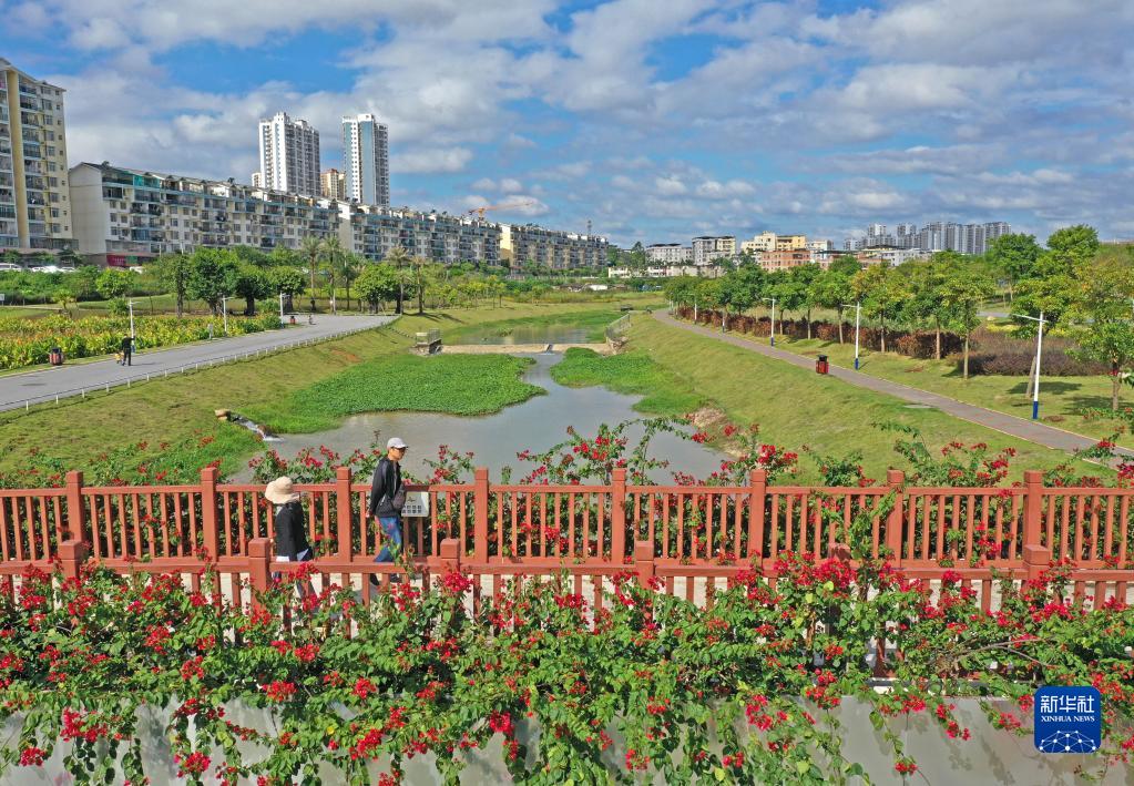 金秋時節(jié),廣西南寧市沙江河濕地公園草木蔥蘢、水碧花紅,宛如一幅美麗畫卷。