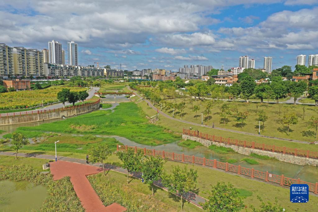 金秋時節(jié),廣西南寧市沙江河濕地公園草木蔥蘢、水碧花紅,宛如一幅美麗畫卷。