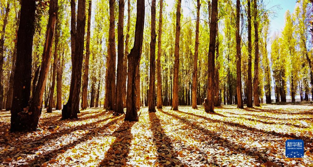 陽光透過拉薩市林周縣邊交林鄉的樹林(10月16日攝,手機照片)。