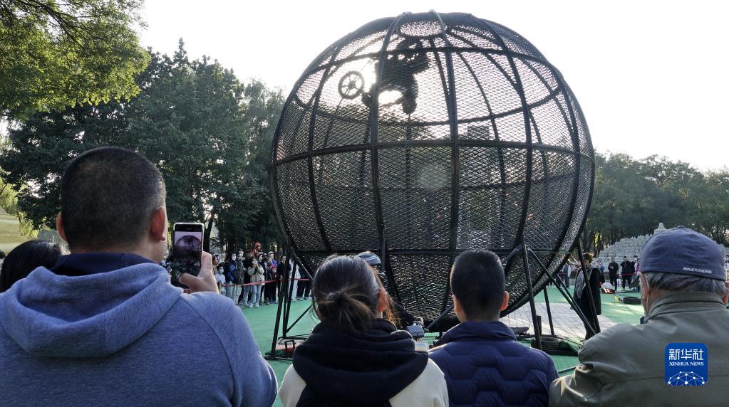 10月17日,市民在世界公園觀賞摩托車特技表演。