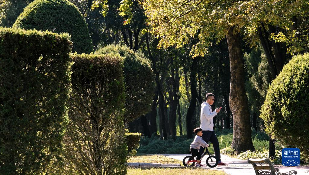 當日,北京天氣晴好,許多市民和游客來到位于北京市豐臺區的世界公園休閑,享受周末時光。