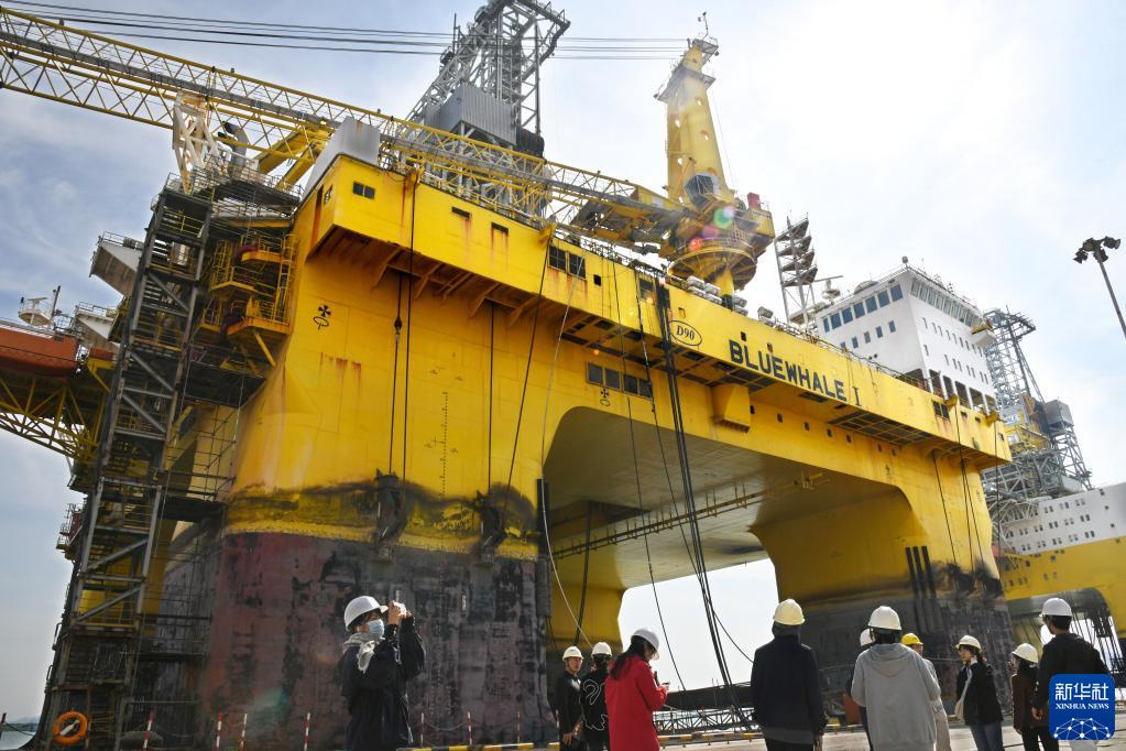 10月18日,參觀者在中集來福士海洋工程有限公司深水碼頭參觀。