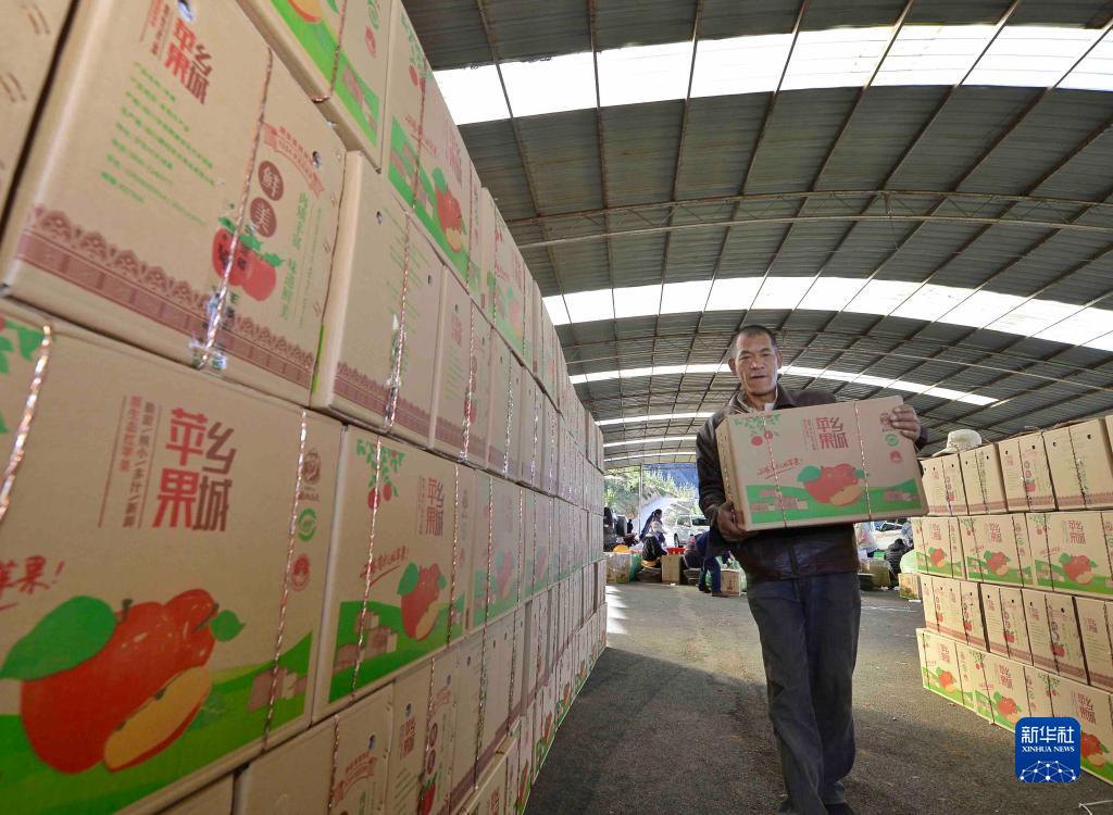 10月20日,在四川甘孜鄉城縣青德鎮萬畝果園,村民搬運包裝好的蘋果。