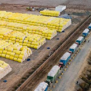近日,新疆棉花的重要產(chǎn)區(qū)沙灣市田間地頭一片繁忙景象,采棉機(jī)在棉田里轟鳴,滿載棉花的卡車在鄉(xiāng)間道路上往來穿梭。棉農(nóng)搶抓農(nóng)時,將采收的棉花售賣給收購廠,當(dāng)?shù)匦旅奘召徆ぷ饔行蜻M(jìn)行。今年,沙灣市種植棉花176.62萬畝,棉花收購價格高于去年同期。
