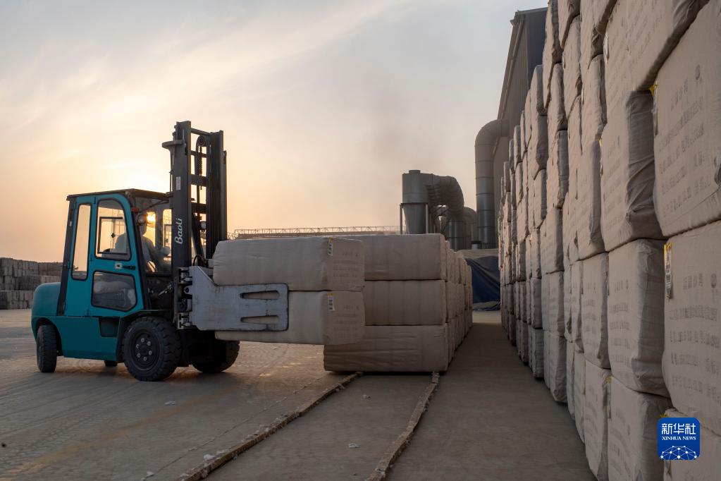 在新疆沙灣市的一家棉花收購廠,工人操作機械搬運剛加工完的皮棉(10月20日攝)。新華社記者 胡虎虎 攝