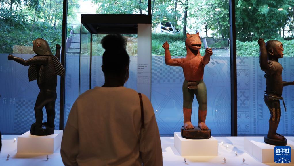 10月28日,一名女子在法國巴黎凱布朗利博物館參觀即將歸還貝寧的文物。
