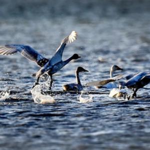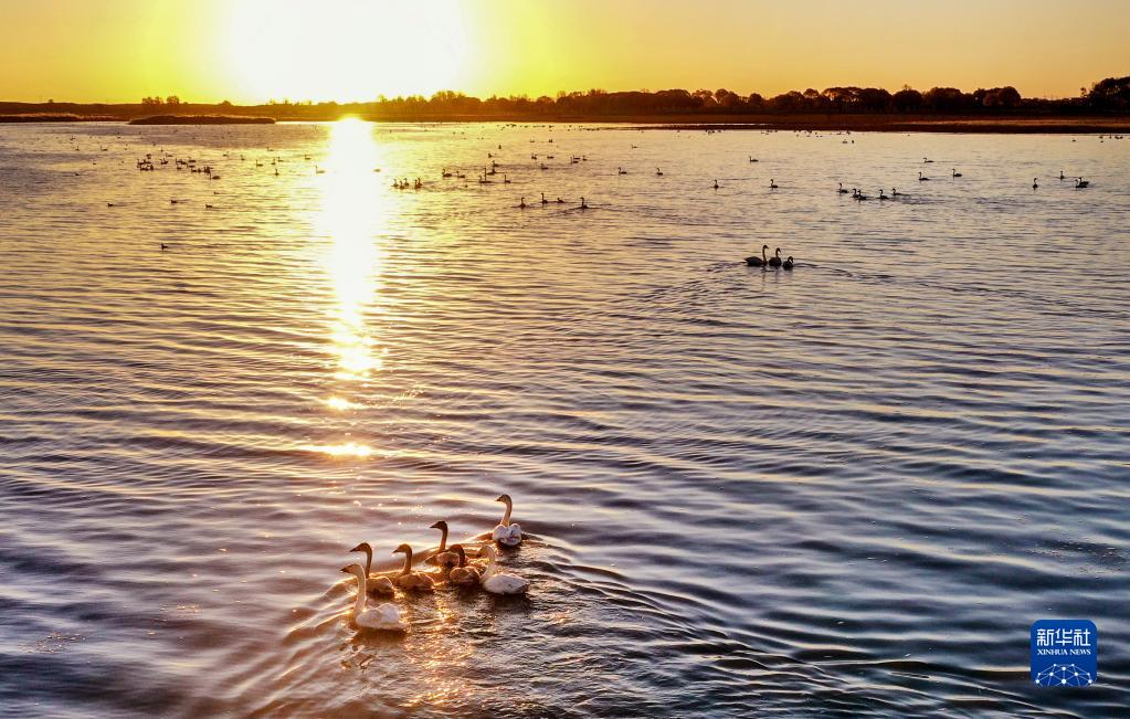 近日,陜西省榆林市榆陽區河口水庫濕地迎來大批白天鵝、赤麻鴨等鳥類。近年來,位于毛烏素沙地南緣的榆陽區采取退牧還濕、禁牧減畜等有效措施,加強生態環境保護。河口水庫濕地擁有大量淺灘、蘆葦,地勢平緩,水域寬廣,野生魚蝦資源豐富,已經成為越冬候鳥途中覓食、停歇的理想之地。